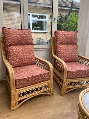 After over a decade of use, my client’s beloved conservatory furniture was showing its age. The cushions were faded and torn, the padding had lost its support, and the webbing beneath had weakened and broken in places. They wanted to breathe new life into the set while keeping its relaxed charm. We chose this beautiful Linwood printed fabric in a rich, warm rust tone, perfect for adding depth and warmth to the space. With new padding, foam, webbing, and fully pipped cushions, the furniture feels brand new. It’s now a beautifully refreshed focal point in the conservatory, ready to offer comfort and style for many more years to come.