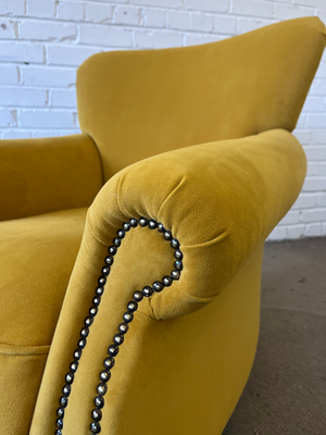 We retained the classic stud detailing to honour the chair’s traditional character while adding a touch of modern luxury. Now fully reupholstered, the armchair and footstool have been given a whole new lease of life, ready to take pride of place and be enjoyed for many more years to come.